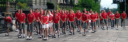 One of the highlights for all athletes and coaches is the Microscooter. The Swiss Delegation will be seen very often on the fancy travel mate, produced in special colours for the Swiss Team.