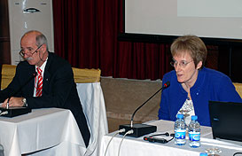 Kemal Tamer & Alison OdellHowever, the meeting started with the presentation of the findings of the working group regarding the management and development of the Universiade sports. The findings were brought by Alison Odell and Kemal Tamer, key members of this working group. The purpose of the project was to develop a framework and associated criteria for the definition of the range and scale of sports in the Summer and Winter Universiades, and to assure the management and development thereof within the business need and resources of FISU. The working group presented a proposal for the application for approval and inclusion of new sports, and the removal of sports from the Universiades. In reviewing and assessing the data available around the Universiades over more than ten years, the working group has been mindful of a number of issues which it is recommended the EC takes into account in planning for future Universiades, i.e. affordability, sustainability, partnership and business planning. In setting out its recommendations, the working group has tried to deliver a policy framework which will be supportive of all these factors, whilst allowing for and acknowledging the requirement for responsiveness to its members and their needs.