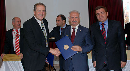 Erzurum Progress ReportThe Erzurum OC showed a video film with the progress of the venue constructions and statements of the political authorities. This film will shortly be published on the FISU TV website at www.fisu.tv. ‘We are holding our promises and are involved as a whole country making important investments for the Winter Universiade’, Mr. Yunus Akgun, General Director of Youth and Sports said. We will continue our preparations and are confident to be ready in time for the Games.’ FISU 1st Vice President Gallien also signed the agreement with Mr. Hikmet Koçak, Rector of Atatürk University, Bekir Korkmaz, General Coordinator of the WU and Kemal Tamer, President of the Turkish University Sport Federation to organize a Sport Science Conference during the WU. The dates of the Conference will be January 24th to 27th, 2011.