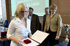 A celebration took place in the past days at the Headquarters of the Hungarian University Sports Federation. The awarding of the 2009 Belgrade Summer Universiade medallists took place following the regrettable loss of Dr. Robert Frenkl. Dr. Beáta Simóka, under-secretary for sports appreciated the athlete’s achievement and awarded them with HUSF plaquette for “outstanding merits in university sports” and a certificate of merit.