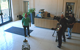 BRUSSELS – Today, September 16th, the FISU Headquarters ‘Château de la Solitude’ was the setting for a Flemish TV Show. The show called ‘Man bijt hond’ (Man bites dog/ http://www.een.be/programmas/man-bijt-hond) is a human interest program from production house Woestijnvis (www.woestijnvis.be) that is aired daily on primetime, after the 7 o’clock news on Channel One (één), with re-runs at midnight and at noon the following day. It is a very successful show that is going on for 13 years now.