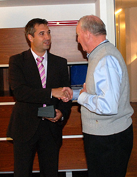 Before proceeding to the agenda of the meeting, FISU President George E. Killian thanked Juan-Carlos Holgado for the FITA hospitality by presenting him a FISU souvenir plate.