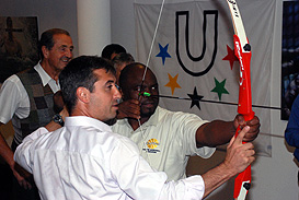 Technical Chair Holgado gave an archery initiation to the FISU delegates