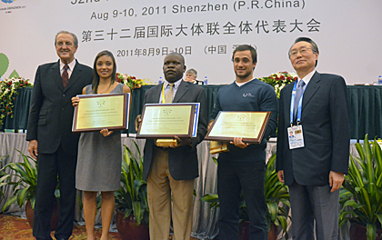 SHENZHEN – The second day of the 32nd FISU General Assembly started with newly elected FISU President Claude-Louis Gallien asking the FISU membership to grant incumbent FISU President George E. Killian the title of Honorary President for all his dedication and commitment to sport and university sport in particular. Mr. Gallien’s proposal was accepted by the Assembly with acclamation.