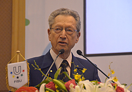 Finally, Alf Laser (AUS) was invited to the stage by Mr. Gallien. Mr. Laser’s first involvement in FISU was at the 1973 SU inMoscow. The former board member was granted the title of Emeritus Honorary member of FISU. ‘This is an acknowledgement of the importance of volunteers as administrators’, Mr. Laser said. ‘I thank you for this great compliment. Being a volunteer administrator is a great value to society and will get you great satisfaction as well.’