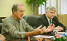 Wilfried Lemke, special advisor to Ban Ki-moon on sport for development and peace (left) with assistant Burgheim Jonas