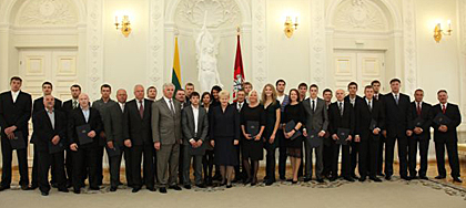 VILNIUS – On October 3rd, 2011 the President of the Republic of Lithuania Mrs Dalia Grybauskaite hosted the reception for the Lithuanian Students Sports Association (LSSA) representatives and the participants of the 2011 Summer Universiade at the Presidential Palace in Vilnius.