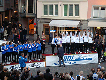 In this competition, the last one under the leadership of ASVZ Director Kaspar Egger, who will retire in 2012, the Uni-Professors won against the ETH boat, and the score is now 3:3. The female students’ competition ended with a win of the ETH students, the score is now 9:1, while also the male students of the ETH won against the Uni team, settling the score at 35:23.