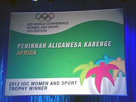 LOS ANGELES – The IOC has recognised the work of Mrs. Peninnah Aligawesa Kabenge in promoting Women and Sport worldwide by awarding her the 2012 accolade for Africa.