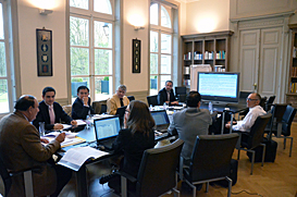 BRUSSELS – The FISU Legal Committee met in Brussels on April 19th, 2012. Committee Chair José Savoye gathered the following committee members: Mr. Hans Bodmer, Mr. Alberto Gilardoni, Mr. André Chaker, Mr. Jing He, Mr. Etienne Vauthier and FISU SG/CEO Mr. Eric Saintrond.