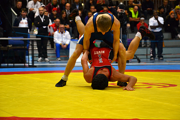 In the 55 kg light-weight category Max Nowry (USA) succeeded to make his way to the gold medal match. Nowry was matched against Dzmitry Brychak (BLR). The light-weight final began slowly and both stayed without points until 1:30 was wrestled. The American managed to pull the gut wrenched move on the last seconds and won the first period. The second period went on in a similar manner until 30 seconds left Nowry defended his first period point and managed to win the gold medal. The bronze medal matches were won by Serif Kilic (TUR) and Ivan Blatsev (RUS).