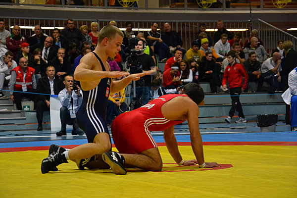 Competing in the highest category, 74 kg, the Iranian Hadi Alizadehpournia came to the tournament holding the 2012 Asian Senior Wrestling Championship title. As expected, Alizadehpournia worked his way to the final where he met with Lazlo Szabo (HUN). Match took off intensely, both competitors trying to get the first point and the Iranian succeeding at it 1:10 into the first period and, also taking the win for the first round. 1:30 of the second period went through without any points thus leading into parterre-position from where the Iranian took the gold medal home. Bronze medallists for the men’s under 74 kg category were Damian Hartmann (GER) and Konstantin Shipaev (RUS).