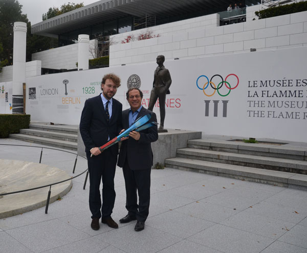 LAUSANNE – The 2013 Trentino Winter Universiade Torch has been welcomed by Francis Gabet (Director of the Olympic Museum at the International Olympic Committee) in front of the Olympic flame at the IOC inLausanne.