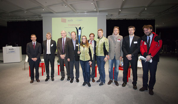 The Torch has been greeted by Dr. Claude Stricker (Executive Director of the AISTS), Prof Jan-Anders Månson (EPFL Professor, AISTS President and scientific advisor to America’s Cup-Alinghi), Bill Morris (Director of Culture, Ceremonies and Education at London 2012), Antoine Dénériaz (Olympic Gold Medallist in Downhill Skiing, Torino 2006), Dr Kim Blair (Director of the Sports Innovation Program at the Massachusetts Institute of Technology and President of the International Sports Engineering Association/ISEA), Robbert de Kock (WFSGI Secretary-General of the World Federation of the Sporting Goods Industry), Dr. Jean-Marie Ayer, Dr Mattia Bertschi (CSEM) and the AISTS/CSEM participants.