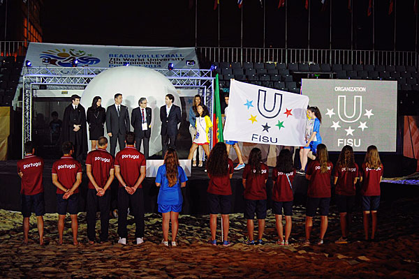 PORTO – No better venue than the beach to open the 7th World University Beach Volleyball Championship. Indeed, yesterday evening 22 July, the event was officially opened on the beach venue where the competitions will take place during the next 5 days. Besides the cultural programme of the opening, all the student-athletes, from 22 different countries, paraded in the main field.