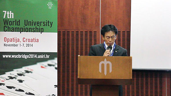 The tournament will last until 6 November. The WUC is held under the patronage of the president of Croatia Ivo Josipović. The opening ceremony was attended by Organizing Committee President Haris Pavletic; the Mayor of City of Opatija Ivo Dujmic; President of the European Bridge League Yves Aubry; President of the Croatian Bridge Federation Jurica Caric; Vice-Rector of the University of Rijeka Zlatan Car; President of the Student Union Aleksandar Susnjar; Deputy Mayor of the City of Rijeka Marko Filipović; Deputy Mayor of the City of Opatija Fernando Kirigin; FISU EC member Hisato Igarashi; FISU CIS representative Alan Sharp; FISU Secretariat delegate Julien Buhajezuk and FISU Medical Committee member Roland Questel.