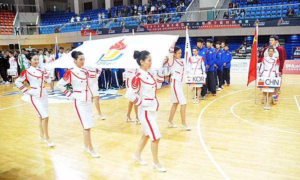 TAIPEI CITY – On the evening of 3 November, the Opening Ceremony of 5th Asian University Men’s Basketball Championship took place at University of Taipei (Tian-mu Campus), which has a newly built arena and will be used for the basketball competition during the 2017 Summer Universiade. 7 teams from China, Hong Kong, Korea, Macau, Mongolia, Philippines and Chinese Taipei will compete with each other in the following 6 days. AUSF President ZHANG Xinsheng, AUSF Senior Vice-President Omar Al-Hai, AUSF Vice-President CHEN Kunning, AUSF Vice Secretary General XUE Yanqing, AUSF Treasurer SEETOW Cheng Fave, AUSF Auditor Jargalsaikhan, AUSF Auditor HA Woong Yong, President of Chinese Taipei University Sports Federation (CTUSF) and the Organizing Committee CHIANG Han-Sun, Vice-Mayor TING Ting-yu, FISU Assessor CHEN Tai-Cheng and other officials were present at the Opening Ceremony. The basketball championship, together with the Seminar on 4November and the Executive Committee meeting on 6 November, will be another mega activity of AUSF in 2014.