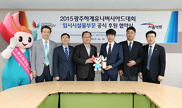 On 30 April, the Gwangju Universiade Organizing Committee (GUOC) Secretary-General Kim Yoon-suk and Seoul Tent CEO Son Young-ho signed a partnership agreement through which the latter agreed to offer temporary installments for the former during the summer games.