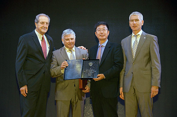 From left to right, Claude-Louis Gallien, FISU President, Eric Saintrond, FISU S-G CEO, Xue Yanqing, FUSC Vice-President and Oleg Matitsyn, FISU first vice-President