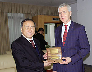 President Matytsin exchanges a gift with Jia Yimin, Rector of the HQUThe FISU President expressed sincere congratulations to FUSC and Huaqiao University for the successful organization of last year’s 3×3 League in Xiamen, also underlined the confidence to the Organising Committee for making this year’s events another success.