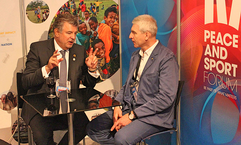 FISU President Matytsin meets with Joel Bouzou, World Olympians Association President and founder of Peace and Sport