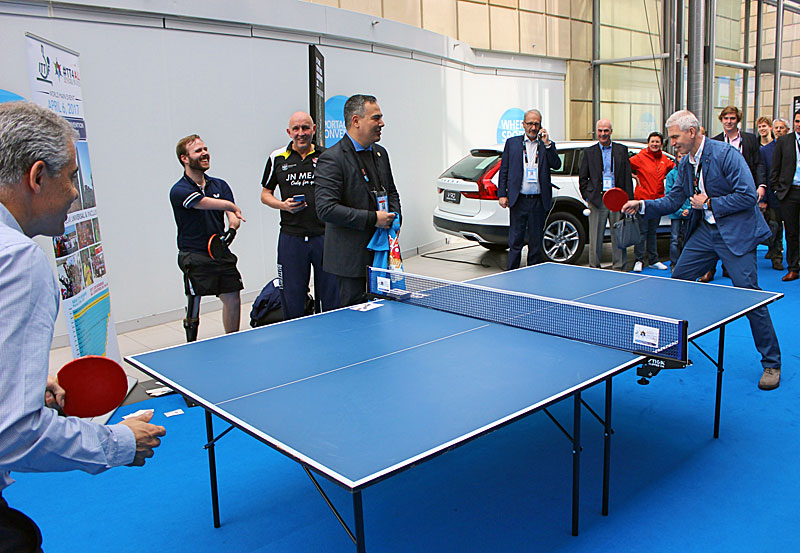 The afternoon brought a bit of an entertainment for SportAccord Convention participants as the International Table Tennis Federation organised demonstrational activities on the occasion of the World Table Tennis Day. The FISU President, as a former table tennis athlete, had a chance to challenge France’s Jean Philippe Gatien, former World Champion and Olympic medalist.