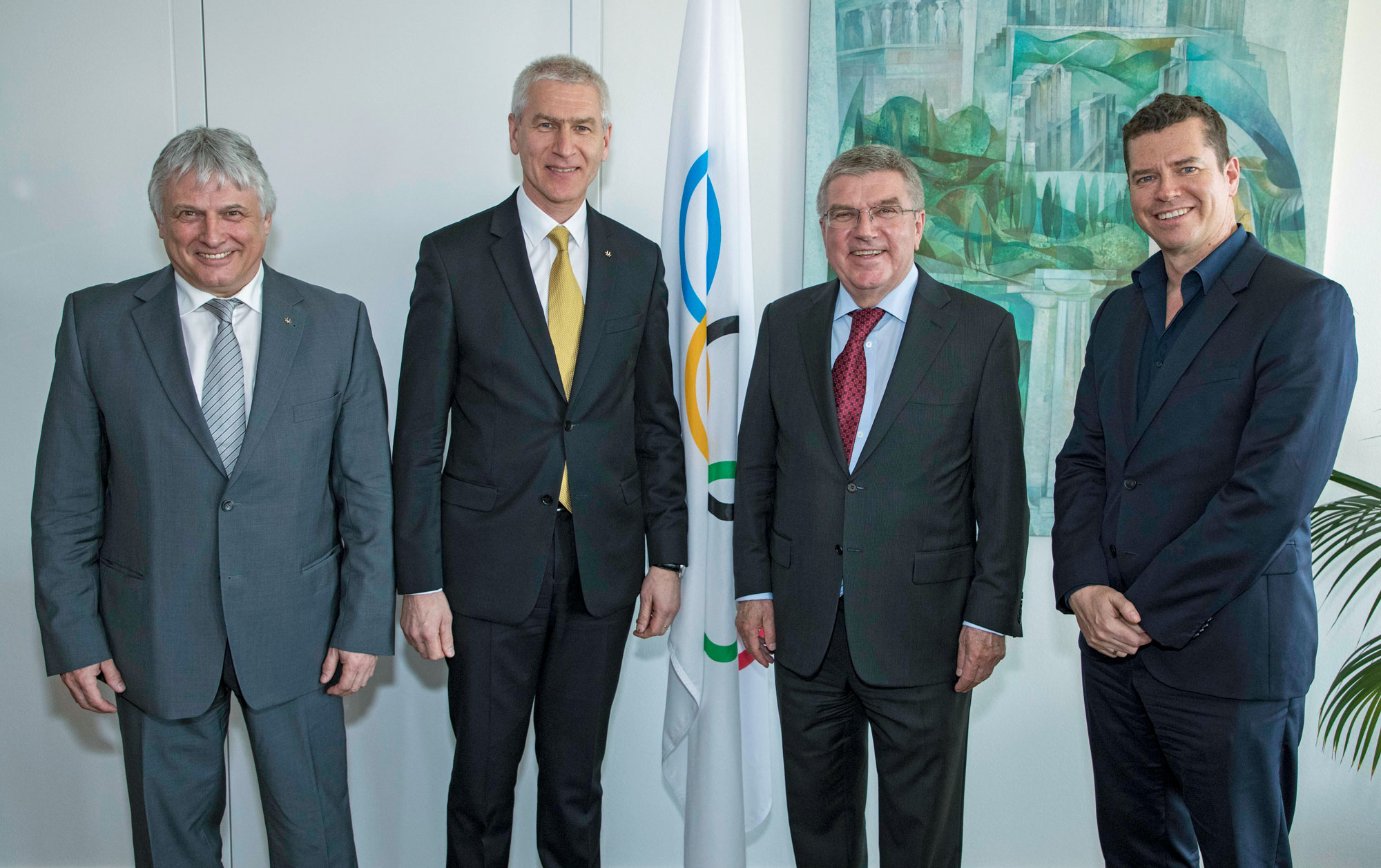 From Left: FISU SG-CEO, Eric Saintrond; FISU President, Oleg Matytsin; IOC President, Thomas Bach; IOC Sports Director, Kit McConnell