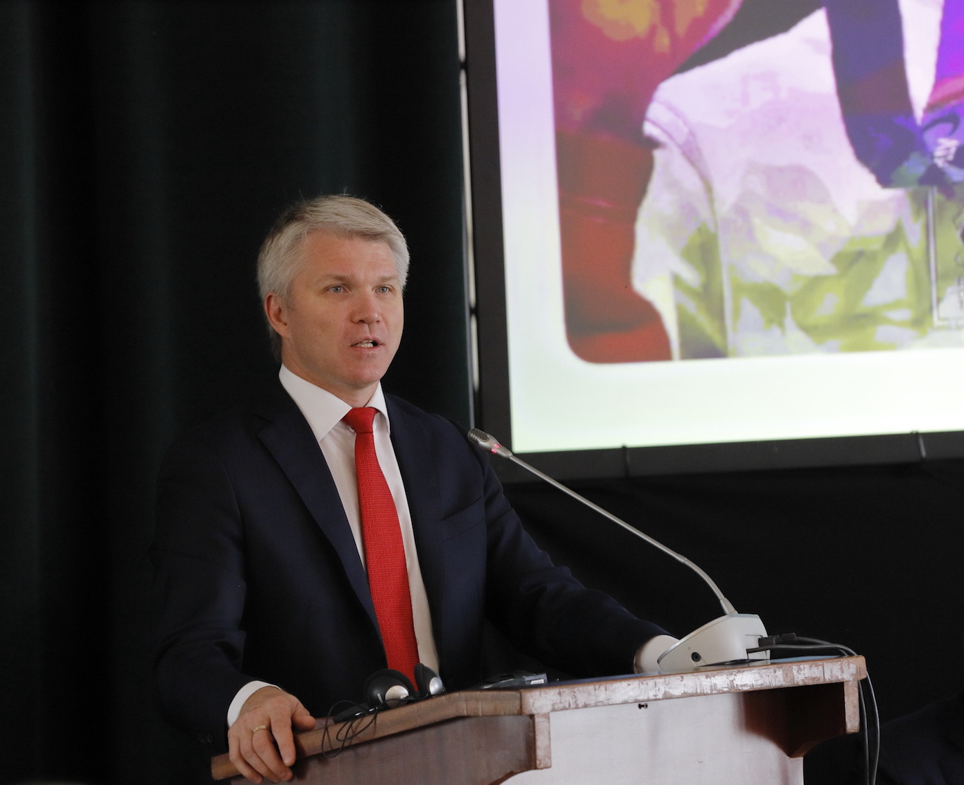 Evgeny Kuivashev, governor of the Sverdlovsk Region, discussed how Ekaterinburg was a modern city of 1.5 million, inspired by sports and a university-going population that totals 200,000 students.