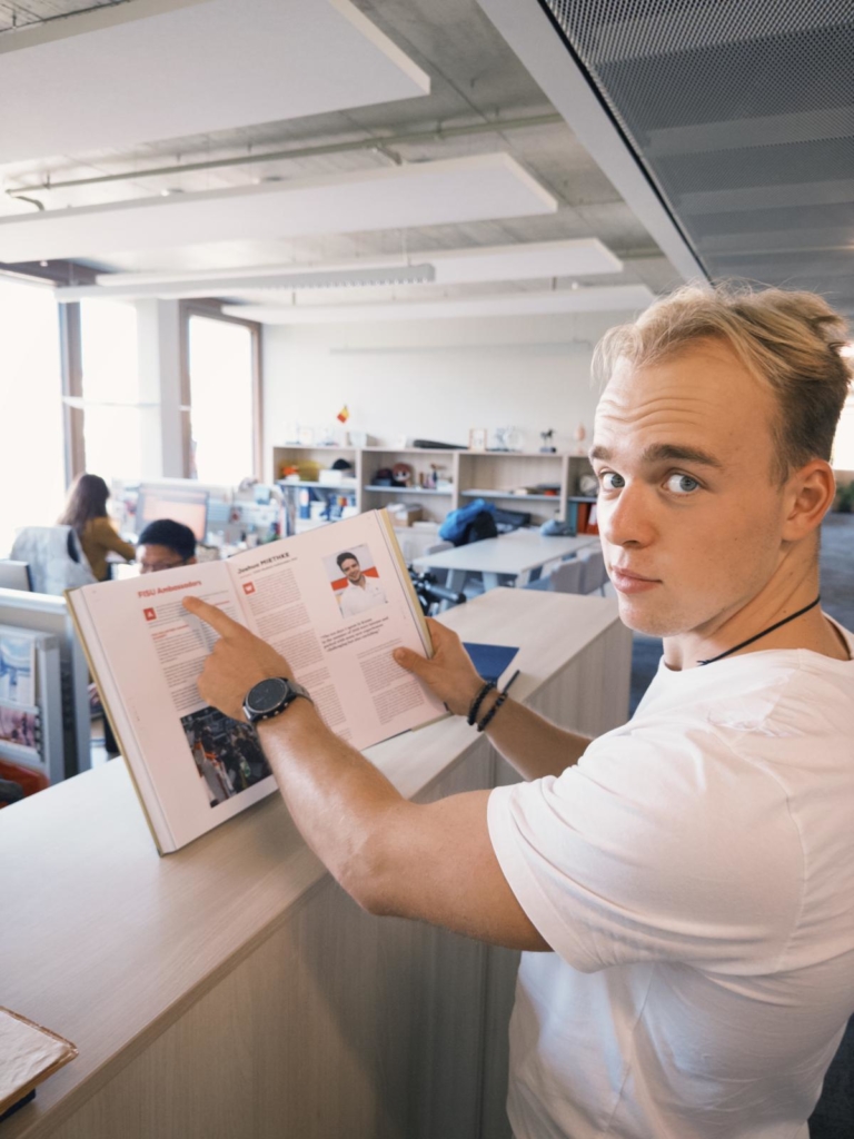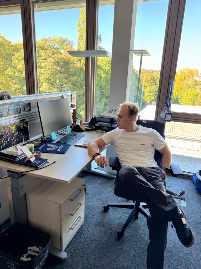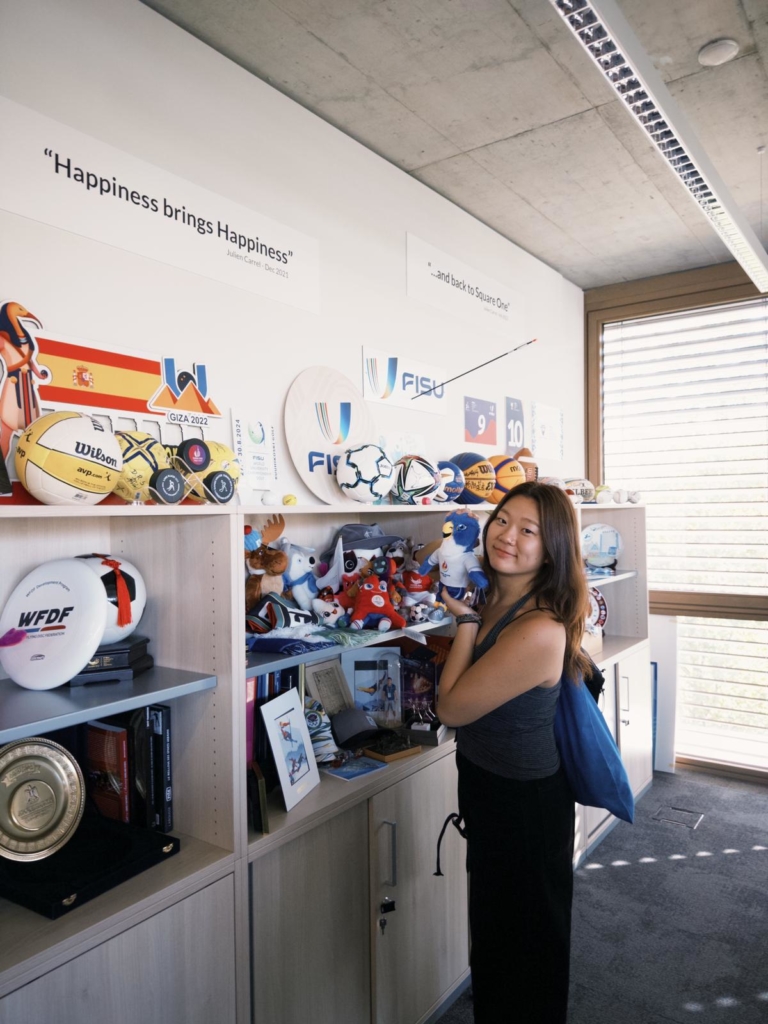 We recently had the privilege to spend an inspiring day at the FISU Headquarters in Lausanne, where we were warmly welcomed by the entire team. The visit offered a great insight into FISU’s culture and daily operations, and seeing the historical archives — filled with documents and artifacts from past Games — was one of the most memorable parts of the experience. It was also special for me to see my mentor’s desk in person and even sit in his chair for a fun photo, while he was still at the FISU Football World Cup, in China!”