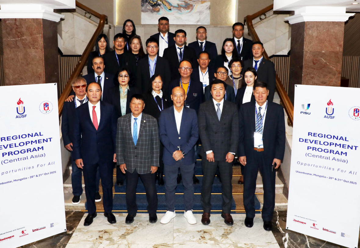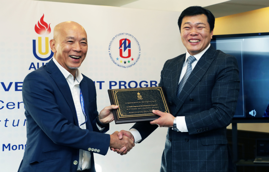 Organised by Asian University Sports Federation (AUSF) (photo left FISU Executive committee member Cheng Fave See Tow from Singapore and FISU Treasurer Bayasgalan Danzandorj from Mongolia) and and the Mongolian Student Sports Federation (MSSF), and supported by the International University Sports Federation (FISU), the inaugural AUSF Regional Development Program was successfully held in Ulaanbaatar, Mongolia on 20-21 October 2025