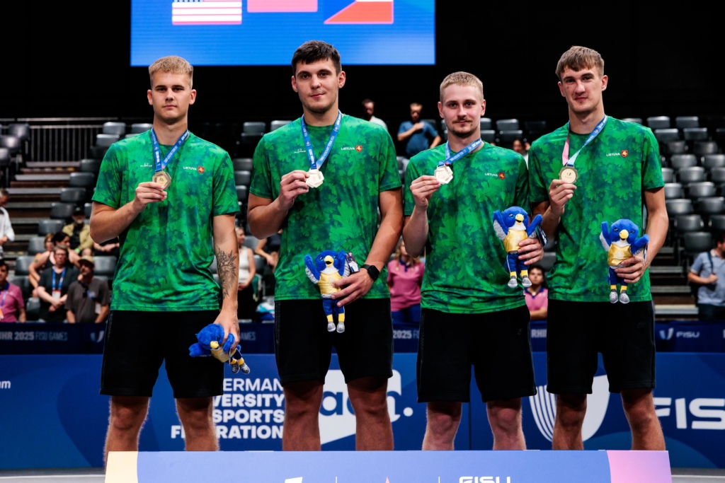After winning the gold medal for Lithuania in July at the Rhine-Ruhr 2025 FISU World University Games, Rocas Jocys, Augustinas Mikštas, Titas Janucevicius and Gabrielus Čelka have travelled to Brazil wearing the Vytautas Magnus colours to try to keep their university’s title., but the ladies from Tsinghua haven’t managed to qualify this year so the women’s tournament will crown new queens.