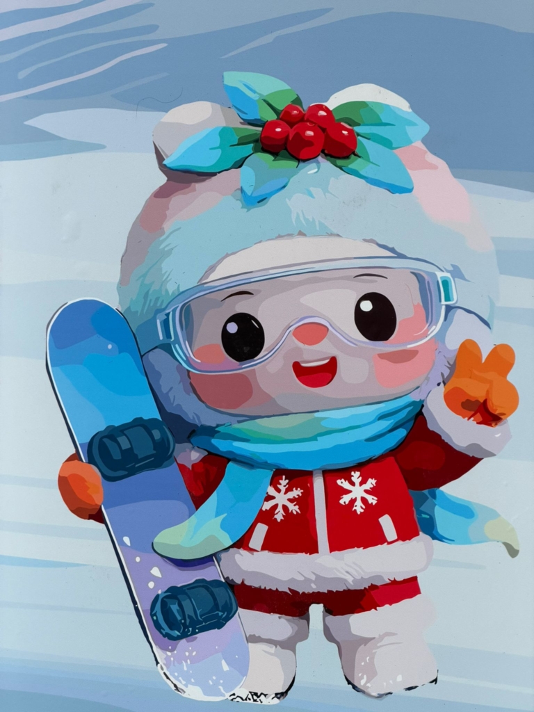 Ji Xue (Snow Ji) is designed based on the Changbai Mountain ginseng, known as the “King of Hundred Herbs”, symbolising boundless vitality. Its orange gloves represent Jilin’s abundant resources and highlight the region’s identity as China’s “Great Granary”. The cuffs adorned with Northeast China floral patterns and the white fur trims on its outfit are vivid cultural symbols of Jilin, conveying the region’s warmth, simplicity and down-to-earth charm. Its scarf flows like the Songhua River, embodying Jilin’s open-mindedness to embrace the world. Holding a snowboard, she seems ready to take flight, carving vibrant arcs down the snow slopes and showcasing the heroic bearing of young athletes.